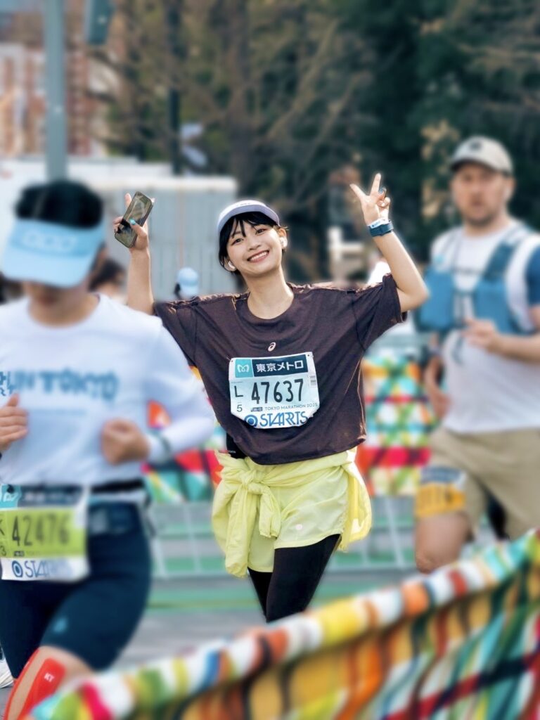 Junata: Until then, I didn’t own proper running shoes, and I didn’t even really know my own shoe size. I used to run in basketball shoes or regular sports shoes, so I was feeling ‘my feet get tired’ or ‘If it’s 24cm, I get blisters.’ I never realized how much wearing the right shoe size matters, so I was impressed! Continuing to receive advice from ASICS and my fellow influencer, I started training in January, running over 10km every 2-3 days at a comfortable pace, and finally welcomed the day of the Tokyo Marathon.